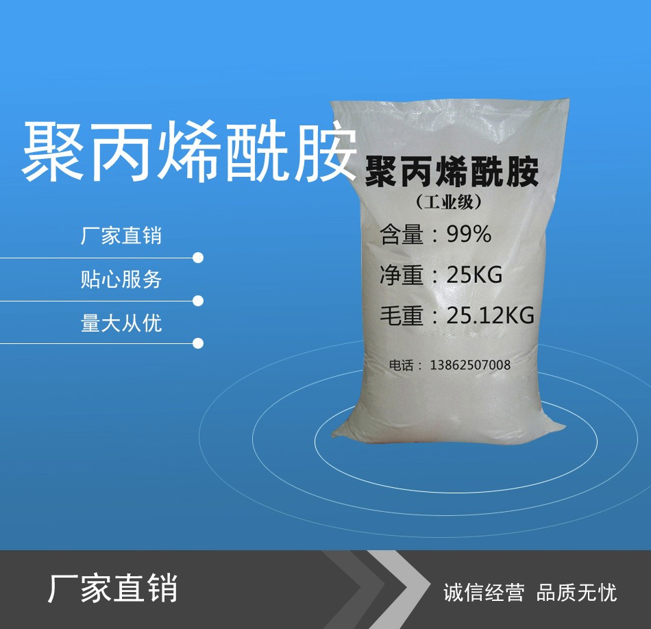 性状说明:聚丙烯酰胺(PAM )是一种线型高分子聚合物,产品主要分为干粉和胶体两种形式。按其平均分子量可分为低分子量(<100 万)、中分子量(200~400 万)和高分子量(>700万)三类。按其结构又可分为非离子型、阴离子型和阳离子型。阴离子型多为PAM 的水解体(HPAM)。聚丙烯酰胺的主链上带有大量的酰胺基,化学活性很高,可以改性制取许多聚丙烯酰胺的衍生物,产品已广泛应用于造纸、选矿、采油、冶金、建材、污水处理等行业。聚丙烯酰胺作为润滑剂、悬浮剂、粘土稳定剂、驱油剂、降失水剂和增稠剂,在钻井、酸化、压裂、堵水、固井及二次采油、三次采油中得到了广泛应用,是一种极为重要的油田化学品